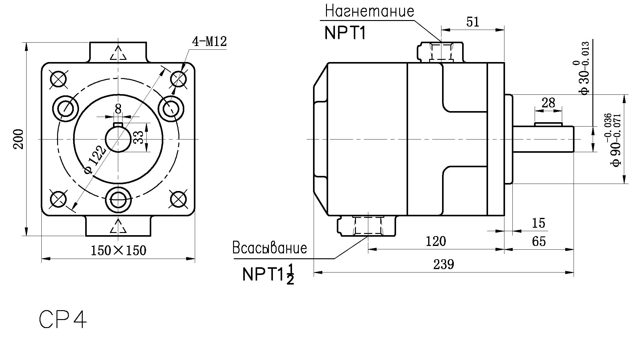 Пластинчатый нерегулируемый насос с рабочим объемом 125 см3, взаимозаменяем с насосом НПл 125/6.3